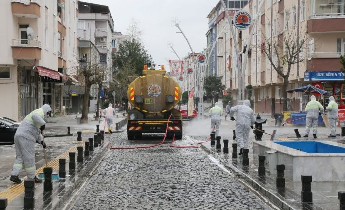 Düzenli olarak toplanan Atakum Belediyesi Acil Durum Komisyonu’nun ilçedeki cadde, sokak, cami ve çocuk parklarında dezenfeksiyon çalışmalarının sıklaştırılması yönündeki kararının ardından Temizlik İşleri Müdürlüğü’nce oluşturulan hijyen timi faaliyetlerini yoğunlaştırdı. Özel koruyucu kıyafetler ile görev yapan personel, Lozan Caddesi ve çevresinde dezenfeksiyon uygulaması gerçekleştirdi. Tankerlerle bölgeye getirilen deterjanlı suyu caddeye yayan ekipler, fırçalar yardımıyla köpükledikleri alanı temizledi. Köpüklü yıkamanın ardından dezenfektan maddeler kullanan personel, caddeyi Atakumluların kullanımına hazır hale getirdi. Ekipler, salgın riskinin devam ettiği sürece ilçenin dört bir yanında dezenfeksiyon çalışmalarının devam edeceğini aktardı.