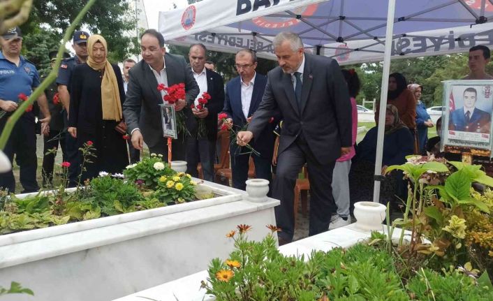 Asri Mezarlık’ta bulunan Garnizon Şehitliği’nde İlçe Müftülüğü imam hatipleri tarafından okunan Kur’an-ı Kerim’in ardından şehitler için dualar edildi. Anma töreni sonrası protokol üyeleri tarafından şehit mezarlarına karanfil bırakıldı.