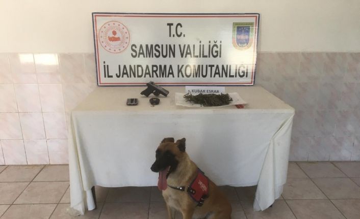 Samsun İl Jandarma Komutanlığı ve Bafra İlçe Jandarma Komutanlığına bağlı ekiplerce yürütülen istihbari çalışmalar sonucunda Ağıllar Mahallesi’nde sabah saatlerinde H.İ.A. isimli şahsın evinde narkotik dedektör köpeği ‘Ozon’ ile yapılan arama neticesinde 72 gram kubar esrar, 1 adet ruhsatsız tabanca, 1 adet elektronik hassas terazi ve önceden hırsızlığa konu olan bir adet cep telefonu ele geçirildi. Akşam saatlerinde yine Ağıllar Mahallesi’nde F.D. isimli şahsın evınde yapılan aramada da 26 gram kubar esrar maddesi ele geçirildi. Her iki şahıs da ifadelerinin alınmasının ardından serbest bırakıldı.