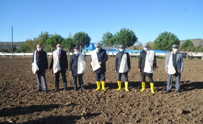 Konuşmaların ardından yöresel kıyafet giyen protokol tarlaya girerek buğday ekimi gerçekleştirildi.