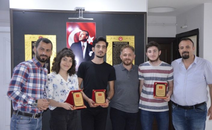 Başarı gösteren öğrenciler, M. Hakkı Dokumacı tarafından plaketle ödüllendirildi.