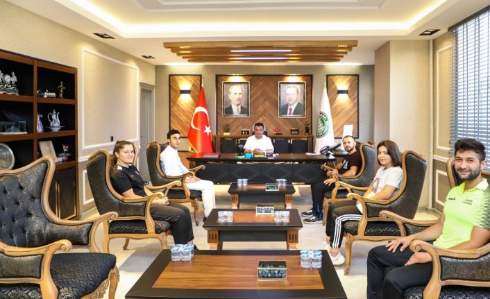Belediyeye gerçekleşen ziyarette; Çarşamba Belediyespor sporcuları Beyza Aydın ve Kader Torun’un yanı sıra Antrenör Aleattin Köksal ve Çarşamba Belediyespor Koordinatörü Mücahit Okuyucu da yer aldı.
