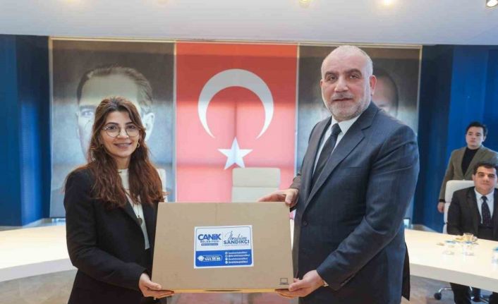 Başkan İbrahim Sandıkçı, toplantının ardından öğretmenlere dizüstü bilgisayar hediye ederken öğretmenler, eğitime yönelik projeler ve desteklerden dolayı Başkan İbrahim Sandıkçı’ya teşekkür etti.