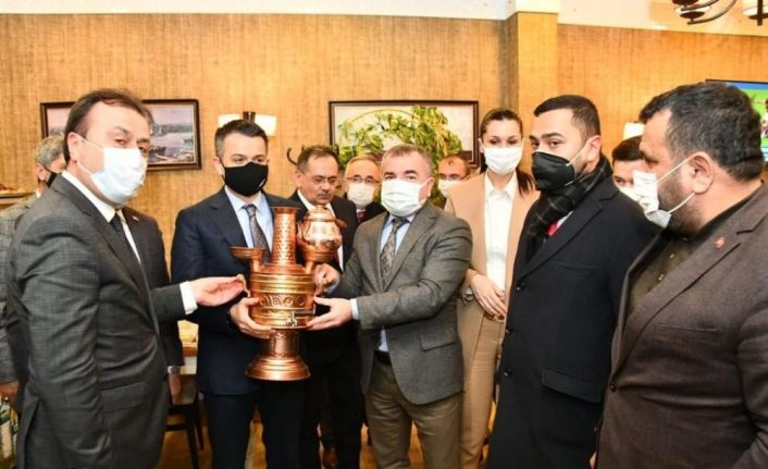 SAMSUN (İHA) – Havza Belediye Başkanı Sebahattin Özdemir, Tarım ve Orman Bakanı Bekir Pakdemirli’ye Havza semaveri hediye etti.