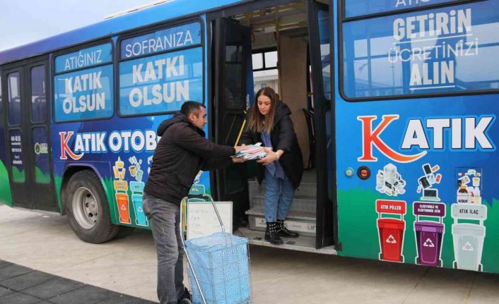 Samsun’un Atakum Belediyesi’nin geri dönüştürülebilir atıkları ücret karşılığında toplayan ‘Katık Otobüsü’ yola çıkışının ilk haftasında 1 ton 211 kilogram atık topladı