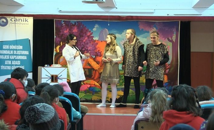 Kültür ve sanat faaliyetlerine hız kesmeden devam eden Canik Belediyesi, yürüttüğü çevre projesi kapsamında ilçedeki ilkokullarda sergilenen tiyatro oyunları ile öğrencilere çevre bilinci kazandırıyor.