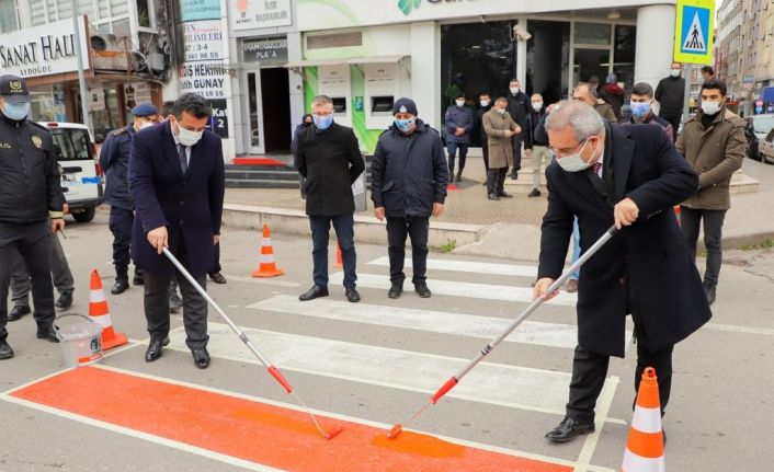İçişleri Bakanlığı tarafından yayaların trafikteki önceliğini vurgulamak amacıyla başlatılan “30 Mart’ta Kırmızı Çizgimizi Çekiyoruz” uygulaması Çarşamba’da başladı.