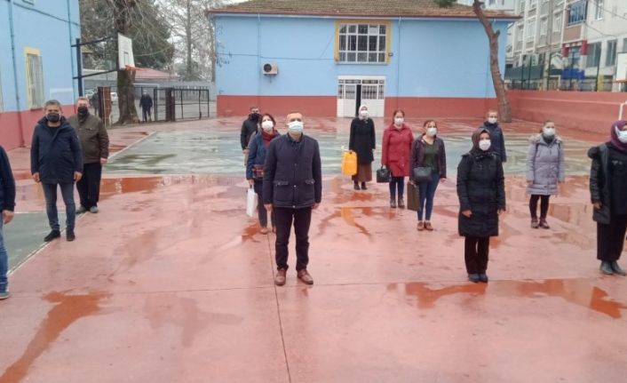 Samsun’un Çarşamba ilçesinde, Milli Eğitim Bakanı Ziya Selçuk’un çağrısıyla okul bahçelerinde İstiklal Marşı okundu ve bayrak töreni gerçekleştirildi.