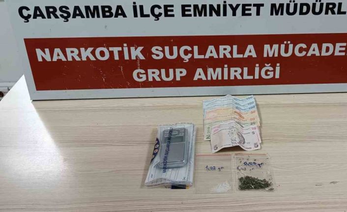 Edinilen bilgiye göre, Çarşamba Cumhuriyet Başsavcılığı koordinesinde yürütülen soruşturma çerçvesinde Çarşamba ilçesi Yeşilırmak Mahallesi’nde uyuşturucu satışı yaptığı değerlendirilen D.K. isimli şüphelinin evine Çarşamba İlçe Emniyet Müdürlüğü Narkotik Şube ekiplerince operasyon düzenlendi. Operasyonda yaklaşık 2 gram metamfetamin, yaklaşık 1 gram esrar, 1 adet hassas terazi, bir miktar para ve şüpheliye ait cep telefonu ele geçirildi.