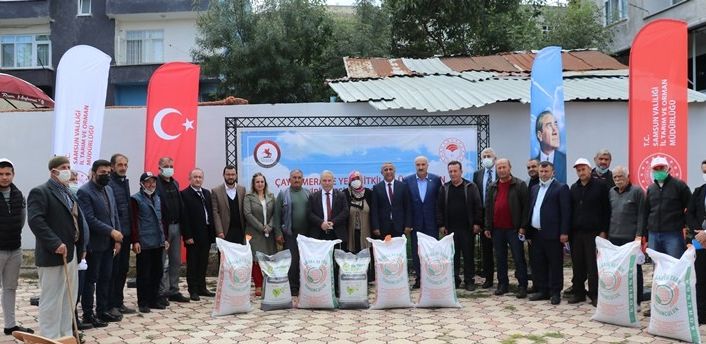 Yüzde 75 bakanlık destekli, yüzde 25 çiftçi katkılı 20 bin kilogram yem bezelyesi, 6 bin 500 kilogram korunga ve 3 bin kilogram İtalyan çimi (süt otu) tohumluğu dağıtımı Kadamut Mahallesi’nde düzenlenen program ile çiftçilere verildi. Programa, İlkadım Belediye Başkanı Necattin Demirtaş, İl Tarım ve Orman Müdürü İbrahim Sağlam, Ziraat Odası Başkanı Hasan Tütüncü, ilçe müdürleri, muhtarlar ve çiftçiler katıldı.