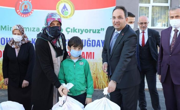 50 dekar alanda ekilmek üzere 2’si kadın 8 çiftçiye Kaymakam Cevdet Ertürkmen ve Belediye Başkanı Hamit Kılıç tarafından bin 300 kilogram tohum desteği düzenlenen törenle dağıtıldı.