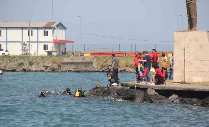 Samsun Deniz Polisi, Sahil Güvenlik, Jandarma Sualtı Arama Kurtarma ekipleri ve Büyükşehir Belediyesi İtfaiye Daire Başkanlığına bağlı dalgıçlar denizden atık topladı.