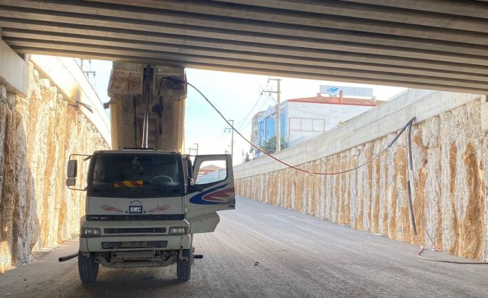 Samsun-Sinop karayolunda bulunan Tofaş Kavşağı’nda devam eden alt geçit çalışmalarında İshak G.’nin (56) kullandığı 55 SG 819 plakalı şantiye kamyonu sürücüsünün damperi açık unutması nedeniyle alt geçitten geçerken elektrik hattını kopartarak köprüye çarparak durdu.