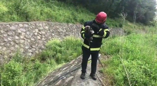 Sağlık durumunun iyi olduğu belirlenen yavru köpek, itfaiye ekipleri tarafından doğal ortamına bırakıldı.