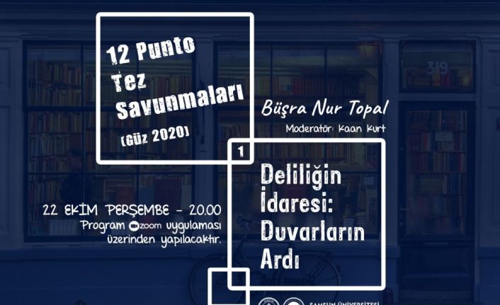 12 Punto Tez Savunmaları’nın ilkinde, Büşra Nur Topal’ın delilik olgusunu sosyolojinin bilgi üretme prosedürleriyle ele aldığı saha çalışmasını aktaracağı, “Deliliğin İdaresi: Duvarların Ardı” başlıklı savunma gerçekleşecek. Kaan Kurt moderatörlüğünde düzenlenecek olan etkinlik, ilgi duyan bütün katılımcılara açık olup katılımcılar, 20 dakikalık tez sunumunun ardından soru-cevap bölümünde katkı sağlayabilecekler.
