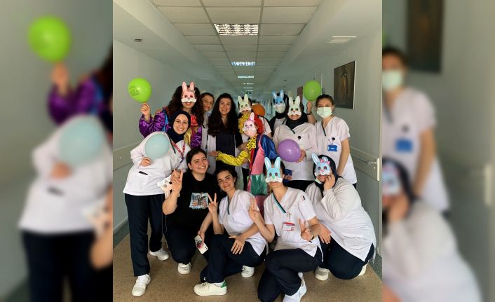 Ondokuz Mayıs Üniversitesi (OMÜ) Sağlık Bilimleri Fakültesi Ebelik Bölümü 3. sınıf öğrencileri, hazırladıkları materyalleri, Samsun Eğitim ve Araştırma Hastanesi Kadın Doğum ve Çocuk Hastalıkları Hastanesi Süt Çocuğu 1 Servisi’nde yatan çocuklarla buluşturdular.