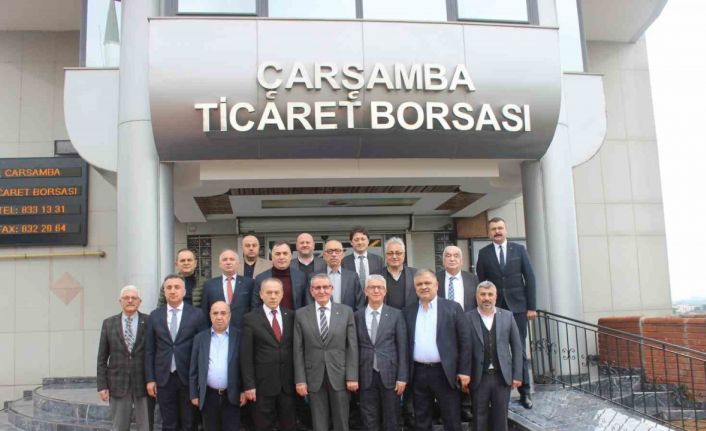 Samsun TSO Yönetim Kurulu Başkanı ve Türkiye Odalar ve Borsalar Birliği (TOBB) Başkan Yardımcısı Salih Zeki Murzioğlu, Yönetim Kurulu Başkan Yardımcısı Kadir Beytekin, Yönetim Kurulu Sayman Üyesi Fahri Eldemir, Yönetim Kurulu Üyeleri Erkan Malkoç, Ayhan Çakır, Zafer Dilmen, Kerem Tüfekçi ve Genel Sekreter Süleyman Karabük, geçen yıl ekim ayında borsa organ seçimlerini tamamlayan Çarşamba Ticaret Borsası Meclisine hayırlı olsun ziyaretinde bulundu.
