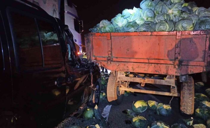 Hafif ticari araç lahana yüklü römorka çarptı: 2 yaralı