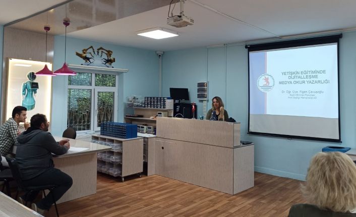 Ayvacık Halk Eğitim Merkezi kodlama atölyesinde yapılan eğitim toplantısında Ondokuz Mayıs Üniversitesi (OMÜ) öğretim üyeleri; Prof. Dr. İlknur Aydın Avcı, “Yetişkinlerde Dijital Becerilen Geliştirilmesinin Yaygın Eğitim Çalışmalarına Etkisi”, Dr. Öğr. Üyesi Figen Çavuşoğlu “Dijital Eğitim Materyallerinin Geliştirilmesi”, Dr. Öğr. Üyesi Özge İşeri “Dijital Dünyada İstismarların Önlenmesi”, Dr. Öğr. Üyesi Oya Sevcan Orak ise “Medya Okuryazarlığı” konularında sunumlarını gerçekleştirdi.