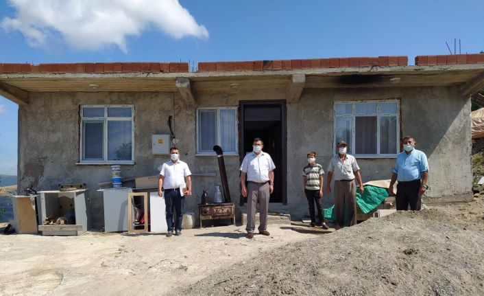 Harmancık Mahallesi’nde ihtiyaç sahibi 2 aileye vakıf tarafından yapılan evlerde incelemelerde bulunan Kaymakam Zaman,