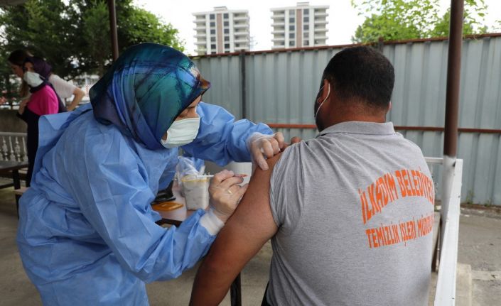 İlkadım Belediyesi temizlik işleri personeli “yerinde aşı uygulaması” ile şantiye içerisinde kurulan mobil aşı merkezinde aşılandı.