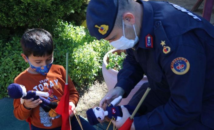 Ekipler 23 Nisan’ı evinde kutlayan çocuklara bayrak hediye ederek günün anlam ve önemini vurgulayıp, sevinçlerine ortak oldu. Bayraklarını alan çocuklar jandarma personellerine teşekkürlerini iletirken sevinçleri gözlerinden okundu.