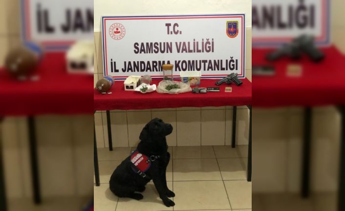 Edinilen bilgiye göre, Samsun İl Jandarma İstihbarat Şube Müdürlüğü, KOM Şube Müdürlüğü ekipleri ile Çarşamba İlçe Jandarma Karakol Komutanlığı tarafından yürütülen çalışmalar neticesinde Çarşamba ilçesi Aşağı Dikencik Mahallesi’nde ikamet eden A.A. (35) isimli şahsın ’uyuşturucu madde imal ve ticareti yaptığı’ bilgisinin alınmasına müteakip KEP uygulaması kullanılarak şahıs hakkında gerekli araştırmalar yapıldı. A.A. isimli şahsın Aşağı Dikencik Mahallesi ve Yeşilırmak Mahallesi’ndeki ikametlerinde yapılan arama neticesinde şüphelinin ev ve eklentilerinde yapılan arama sonucunda, 240 gr kubar esrar, 1 adet kullanma aparatı, 1 adet kurusıkı tabanca, kurusıkı tabancaya ait 34 adet fişek, 5 gr kenevir tohumu ele geçirildi.