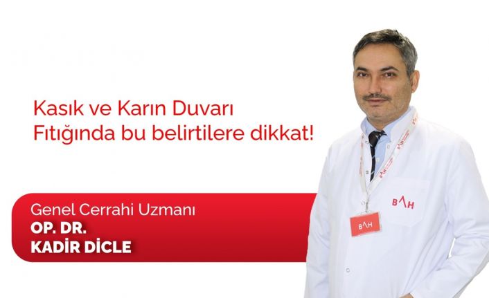 Genel Cerrahi Uzmanı Opr. Dr. Kadir Dicle, "Özellikle bulantı, kusma, iştahsızlık bununla birlikte hızla şiddetlenen karın ve kasık ağrısı kasık ve karın duvarı fıtığına işaret olabilir" dedi.