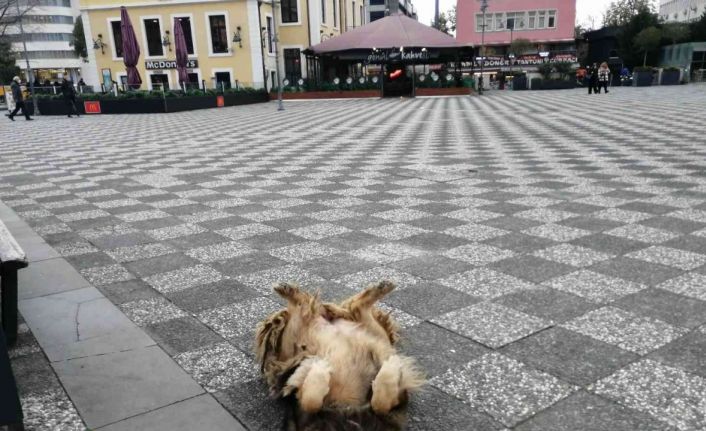Soğuk havaların etkili olduğu Samsun’da güneşin yüzünü gösterdiği nadir anlarda sokak hayvanları da güneşin tadını çıkarıyor. Samsun’da meydanda bulunan bir köpeğin uyurken büründüğü şekiller görenlerin dikkatini çekti. Sırt üstü yatarak patilerini havaya kaldıran köpek, dakikalarca bu şekilde uyumaya devam etti.