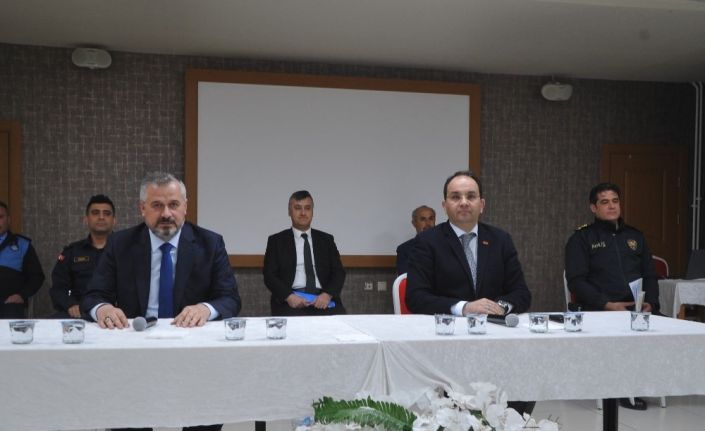 Kaymakam Cevdet Türkmen yaptığı konuşma ’da uyarılarda bulunarak kulaktan dolma bilgilere itibar edilmemesi gerektiğine dikkat çekerek, İlçe Sağlık Müdürü ile irtibat halinde olunmasını söyledi. Kaymakam Ertürkmen, “Umuma açık yerlerin denetimi üzerinde çok sıkı duruyoruz. Bize bildirilen yerler kon usunda ilçe hıfzıssıhha kurul kararlarımızı aldık. Restoran ve lokantalarımız dışında umuma açık yerler kapatıldı. Yalnız lokanta ve restoranlarda masaların arası 1 metre olmak şartı var. Dondurma satılan yerlerimizde paket servisi yapılacak ama oturulmayacak. Oto ve hayvan pazarlarını kapatma kararı aldık. Halı sahalarımız noktasında bir karar yoktu bugün itibarıyla hıfzıssıhha kurul kararıyla durdurma kararı aldık. Hastanemiz hazır, gerekli tatbikatlarımız yapıldı. Her türlü kötü senaryoya karşı hazırlıklıyız. Gerek acil durumda gerekse doktor ve personel noktasında hazırız. Bilgi kirliliği ve insanları paniğe sürükleyecek haberler bizim bu kriz dönemine yardımcı olmaz. Daha çok körükle gideriz üzerine. Korona virüsü yok diyemeyiz bir defa onun varlığını ön kabul olarak almamız ve tedbirlerini de ona göre almamız lazım. Bu aldığımız tedbirler boşuna değil. Sizlerin ve halkın desteğine ihtiyacımız var" diye konuştu.