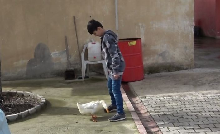 Samsun’un Alaçam ilçesinde 13 yaşındaki çocuk ile ördeğin arkadaşlığı görenleri hayrete düşürüyor.