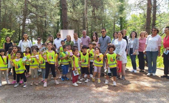OMÜ Vakıf Koleji Müdürü Seda Semiz ve anasınıfı öğrencileri ile gerçekleştirilen etkinlik sonunda öğrencilerin doğadan topladıkları kozalaklardan yapılan hediyeyi ve teşekkür belgesini ÇEVSAM Müdürü Ardalı’ya verdi.