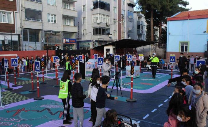Öğrencilerin yoğun ve istekle katıldığı uygulamalı eğitimde Trafik Şube Amirliğinden Polis Memuru Gökhan Aybak, miniklere okul, hastane gibi temsili kurumlarda yaya ve sürücülerin trafikte hangi kurallara uyması gerektiğini anlatarak uygulamalı olarak gösterdi.