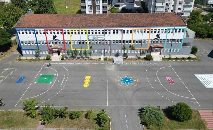 Samsun Büyükşehir Belediyesi tarafından öğrencilerin aktivite alanı olan okul bahçelerinde ‘Okullar Hayat Bulsun’ projesi kapsamında yapılan boyama çalışmasıyla rengarenk oyun alanları oluşturuluyor.
