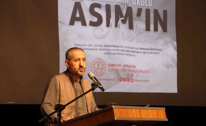 Lise öğrencilerinin katıldığı etkinlikte bir konuşma yapan Atakum İlçe Milli Eğitim Müdürü Mehmet İrfan Yetik, "Atakum İlçe Milli Eğitim Müdürlüğü olarak İstiklal Marşımızı anlamak, değerli şairimiz Mehmed Akif’i gelecek nesillere tanıtmak ve Mehmed Akif Ersoy’un Safahat adlı eserinde Asım’ın Nesli olarak tarif ettiği ahlaklı, karakterli, erdemli, bilgili, medeniyet köklerine bağlı genç modeli oluşturmak için Mehmed Akif Okulu Asımın Nesli Projesini hazırladık. Pandemi şartlarında uzaktan eğitim yoluyla pazartesi ve çarşamba günleri saat 20.00’te akademisyenlerimiz ile gençlerimizi cam ekranda candan dersler ile buluşturduk. 18 Ocak’ta ilk ders zili ile başlayan ve 17 Mart’ta tamamladığımız Mehmed Akif Okulu Asımın Nesli projemize ilçemizdeki resmi ve özel liselerimizin 9 ve 10. sınıflarından 500’e yakın öğrenci katıldı” diye konuştu.
