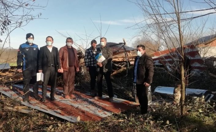 Rüzgardan çatısı uçan evlerde zarar tespit çalışmaları