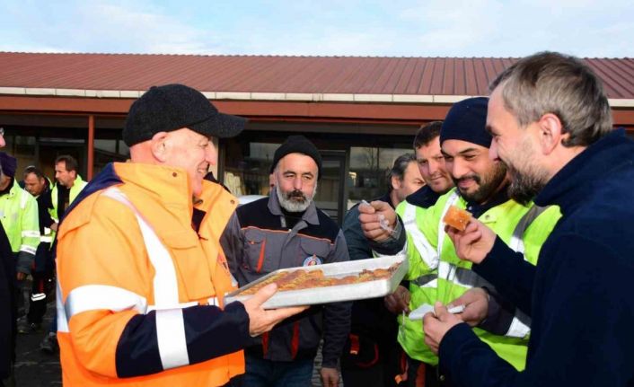 Kar, soğuk ve buzlanma nedeniyle kent genelinde hiçbir mağduriyet yaşanmaması için tüm imkanları seferber eden Başkan Kul personeline baklava ikramında bulundu. Belediye Başkan Yardımcıları ve birim müdürlerinin de katıldığı ziyarette, saha çalışanlarının özverisi takdirle karşılandı.