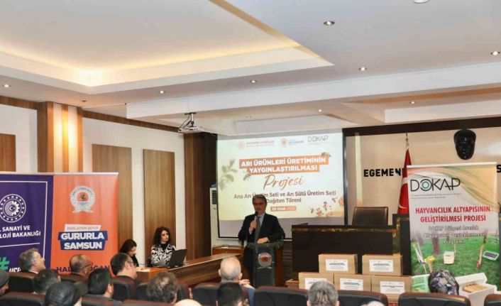 SAMSUN (İHA) – Samsun Büyükşehir Belediyesi (SBB), Samsun İlinde Arı Ürünleri Üretiminin Yaygınlaştırılması Projesi kapsamında ana arı üretim seti ve arı sütü üretim seti dağıtım töreni düzenlenerek çiftçilere setler teslim edildi.