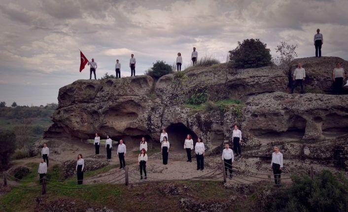 Samsun’da Amisos Akademi Korosu, 18 Mart Çanakkale Deniz Zaferi ve Şehitleri Anma Günü dolayısıyla vatan şairi Mehmet Akif Ersoy’un ‘Çanakkale Şehitlerine’ adlı şiirini çok sesli olarak yorumlayarak dinleyicilerle buluşturdu.