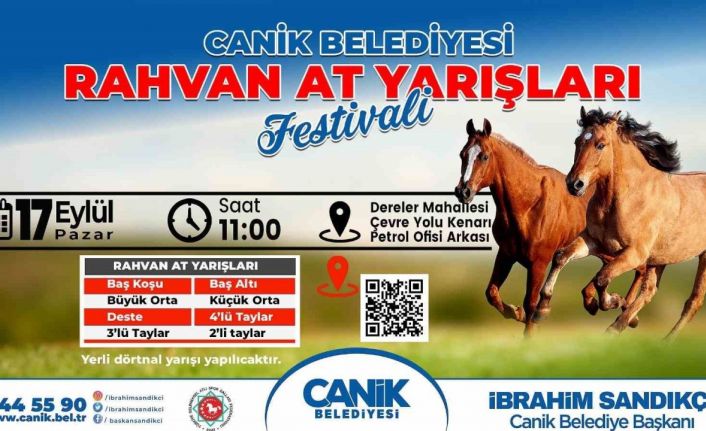 Canik’te yetişen, kendine has duruşu ve yapısıyla diğer at ırklarından ayrı, belirgin özelliklere sahip ’Canik atları’nın boy göstereceği Canik Belediyesi Canik Rahvan At Yarışları Festivali’nde jokeyler, yerli dörtnal yarışlarının da düzenleneceği toplam 9 farklı kategoride ödül için mücadele edecek. Anadolu coğrafyasında önemli bir yere sahip olan Canik atlarının görücüye çıkacağı, rekabet ve heyecanın doruklarda yaşanacağı Canik Belediyesi Canik Rahvan At Yarışları Festivali, 17 Eylül 2023 tarihinde, saat 11.00’de Canik Dereler Mahallesi çevre yolu kenarında kurulan hipodromda gerçekleşecek.