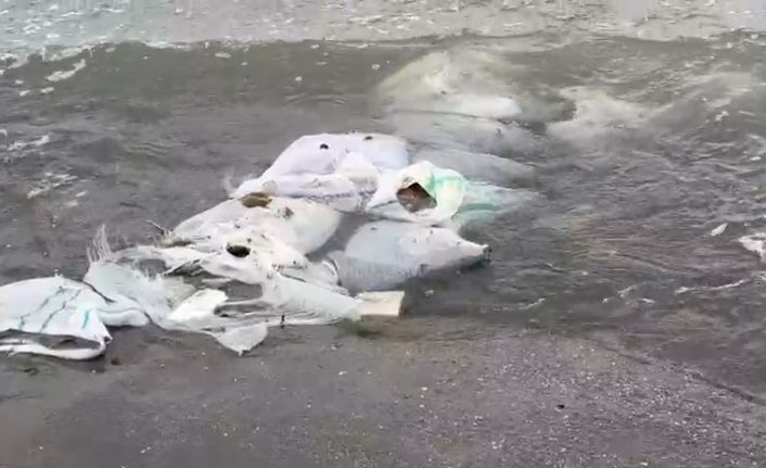 Samsun’un Atakum ilçesi sahilinde vatandaşlar, denizde çuvallar içinde inşaat malzemeleri gördü. Olay cep telefonu ile kaydedilirken, yaşanan duruma bazı vatandaşlar tepki gösterdi.