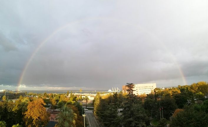 Samsun’da güneşin batmasına yakın ortaya çıkan gökkuşağı görenleri hayran bıraktı.