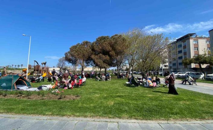 Bazı vatandaşlar kumsala çadır kurarak dinlenmeyi tercih ederken, kimileri de kamp sandalyeleriyle sahilde oturup güneş ve denizin tadını çıkardı. Parklara giden aileler ise çocuklarıyla birlikte oyun oynayıp keyifli anlar yaşadı. Kumda oynayan çocuklar ve piknik yapan aileler, hafta sonunun tadını doyasıya çıkardı.