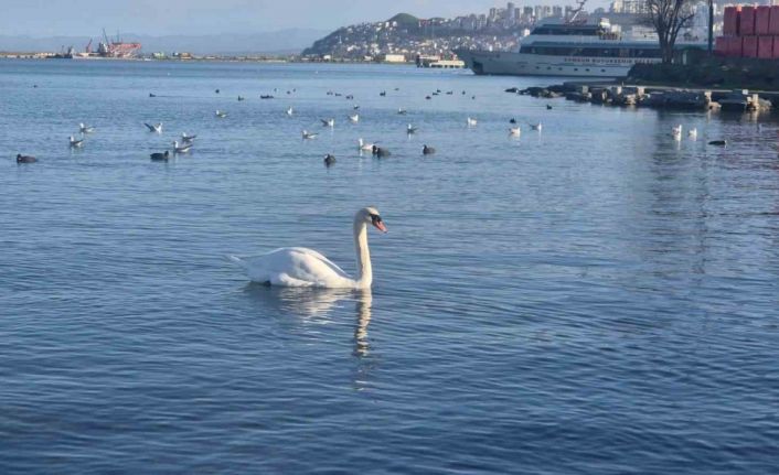 Sahilin dikkat çeken misafirleri arasında, genellikle Sevgi Gölü’nde görülen ve bölgenin maskotu haline gelen beyaz kuğu da yer aldı. Kuğunun kıyıya yaklaşması vatandaşların ilgisini çekerken, elmabaş patka, sakar meke ve su altındaki avcılık yetenekleriyle bilinen batağan kuşları da sahil şeridini mesken tuttu.
