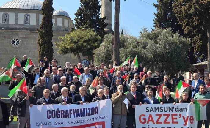 Samsun’da cuma namazı çıkışı cami avlularında İsrail protesto edilirken, Gazze’ye bin selam gönderildi.