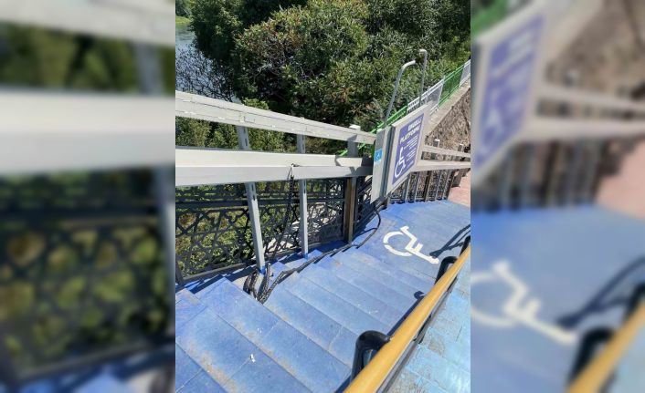 Samsun Çarşamba Belediyesi tarafından Tarihi Köprü yanında hizmete sunulan engelli platformuna kimliği belirsiz şehir magandaları tarafından zarar verildi.
