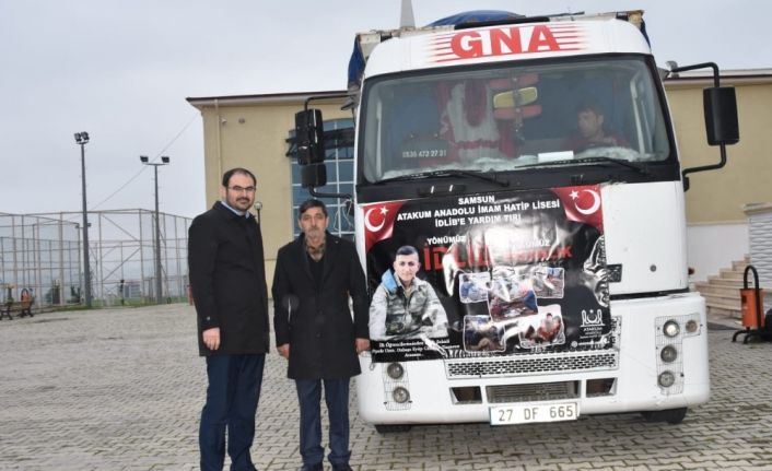 Samsun Atakum Anadolu İmam Hatip Lisesi (İHL) öğrencileri ve velileri tarafından temin edilen insani yardım malzemelerinin bulunduğu ’Şehit Eyüp Gülaştı yardım tırı’, Suriye’nin İdlib kentindeki savaş mağdurlarına ulaştırılmak üzere yola çıktı.