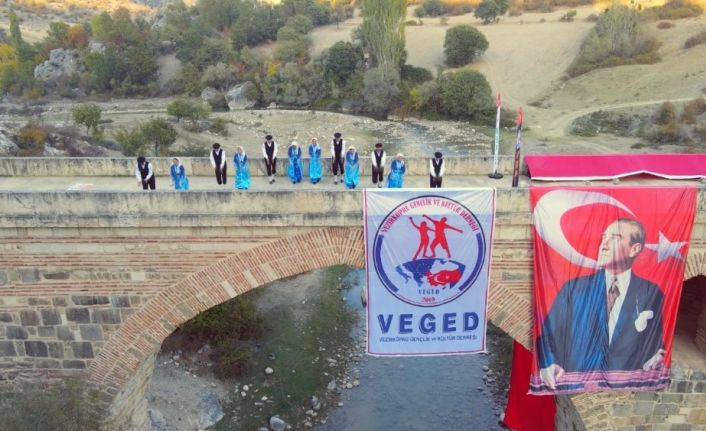 Samsun’un Vezirköprü ilçesinde Tarihi Kurt Köprü’de yapılan 29 Ekim Cumhuriyet Bayramı kutlaması renkli görüntülere sahne oldu.