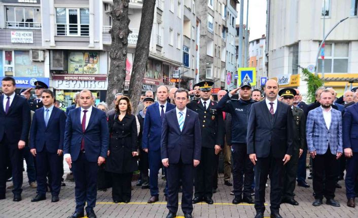 Samsun Terme’de 29 Ekim Cumhuriyet Bayramı kutlamaları çelenk sunma töreniyle başladı.