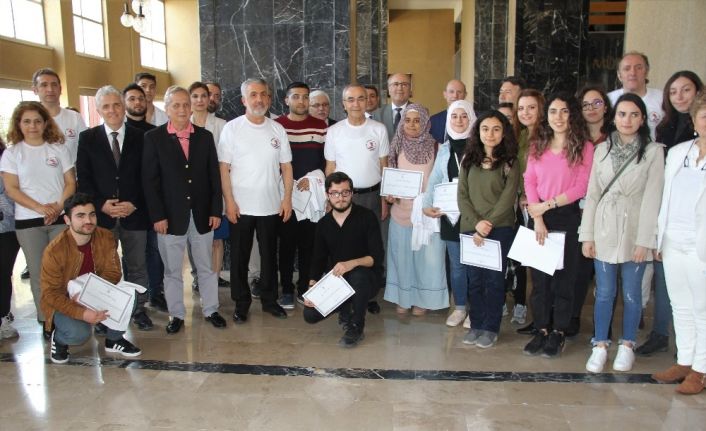 Sergi ziyaretinin sonunda Rektör Prof. Dr. Sait Bilgiç, ilk üçe giren poster çalışmasını hazırlayan öğrencilere başarı belgesi ve “OMÜ Tıp Fakültesi” logolu tişört hediye etti.